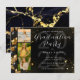 Celebrate your graduate in style with this elegant black and gold graduation party invitation featuring sparkling confetti accents and space for three custom photos. A bold black background paired with shimmering gold elements gives this invite a sophisticated and festive look, while the modern typography highlights important event details. Perfect for high school or college graduates, this design allows you to personalize the name, date, time, and location to create a meaningful invitation for friends and family. With its refined layout and marble-style back, this invitation sets the tone for a memorable graduation celebration.
