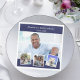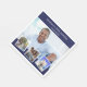 Create your own unique photo collage. Use four, 4 of your favourite photos. Personalize and add a name, age, date. A classic navy blue background. White text.