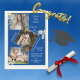 Personalized 4 photo collage graduation party announcement with blue background. Accented with sweet watercolor white daisies. Simple and sweet. Add your special photos to create your own personal announcement. Other colours and styles available.