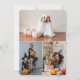 Photo Halloween card featuring a photo collage, a jack o’lantern wearing a black witch hat, purple and orange flowers on the front and a photo collage of three photos at the back. Easily personalize this photo Halloween card with your photos and the family name.