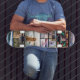 Customizable skateboard with a photo template to which you can add ten of your own photos.