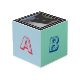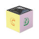 Letters and photo. Your photo will sit on top, it will be surrounded by a black frame with grey inset line. Sides show letters A, B, C, D in pastel colours of blue, green, yellow, and pink. Great for new baby keepsake.