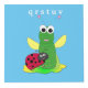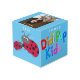 Un cube à six faces avec des crickets, des coccinelles, un logo coloré arc-en-ciel et une photo de DidiPop !