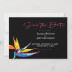 This elegant and modern tropical save the date features you own photo on the back of a vibrant watercolor floral bird of paradise and trendy pink hand lettered script on a dark black background. This is perfect for the couple having a beach wedding or other tropical destination wedding.
