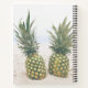 Carnet de spirale avec une photo représentant une paire d'ananas sur une plage de sable.