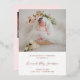 Carte faire-part de naissance photo avec un design simple avec une photo carré sur le devant avec le nom du bébé dans un script élégant et ses statistiques de naissance en feuille d'or rose réel. Le côté arrière a un collage photo avec deux images horizontales et votre message personnalisé sur un arrière - plan rose. Cette carte faire-part de naissance élégante est une excellente façon d'annoncer l'arrivée de votre nouveau-né fille.