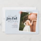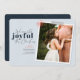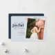 Une carte de vacances moderne avec un message qui dit "Nous sommes très joyeux ce Noël" parfait pour annoncer la grossesse de votre famille. Personnalisez avec vos noms, votre photo préférée et un court message. Image couleur bleue de Jessica Rockowits sur Unsplash
