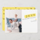 This uniquely customizable photo card is a modern, fun and vibrant way to send out New year wishes to family and friends. The design has room for one large photo and fetext in typographiy on the front. On the rear side, the card is adorned with a cute, fun and modern black confeti pattern along with greetings. Personalize the card by replacing the sample photo, year and names The yellow color in the year box and heart shape on the front side of the card and the yellow color on the rear side of the card be customized to whatever color you like by simply changing the background colors on both the sides. Coordinating and matching products like postage stamps, return address labels, round stickers, etc. are available in our store.