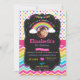 Style Chalboard vibrant et très coloré Invitation à la fête d'anniversaire Rainbow. Doté d'un arc-en-ciel avec un titre "Rejoignez-nous pour un arc-en-ciel de plaisir" et d'un arrière - plan de chevron et de poteau de polka animé. Personnalisez-le facilement et rapidement avec les détails de votre fête et une photo. Cliquez simplement sur le bouton Customiser pour personnaliser davantage l'invitation. Vous pouvez changer les polices et les couleurs des textes comme vous le souhaitez. Cette invitation est parfaite pour tous les âges.