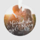 Un souvenir pour votre premier Noël s'est marié avec cette décoration de vacances chic et moderne. Avec notre lettrage moderne original qui dit "Marié et Joyeux" accentué par nos saints dessinés à la main. Customisez avec votre photo et votre texte. Ce design est disponible en couleurs supplémentaires et fait partie d'une collection.