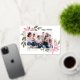 Cartes de vacances personnalisables avec feuille d'or et illustration aquarelle de poinsettias roses, de baies, de coton et de houx. Personnalisez en ajoutant des photos et vos propres textes. Cette carte de vacances florale rose est disponible sur différents types de papier cartonné. Envoyez vos vœux de vacances à votre famille et à vos amis avec cette jolie carte de vacances botanique rose.