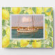 Fun way to display a favourite photo. Your photo bordered in white on an artistic background of yellow lemons and green leaves. Change or delete caption.
