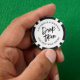 These custom poker chips feature your photo on one side for a personal touch, making them a unique keepsake. The other side is styled as a drink token with the bride and groom’s names at the top, “Drink Token” displayed in the centre, and “One Free Well Drink” at the bottom.