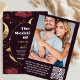 Cette invitation allie harmonieusement élégance et charme céleste, ouvrant la voie à votre mariage d'inspiration céleste. La riche toile de fond bordeaux, ornée d'accents dorés chatoyants, crée une atmosphère de mystique et de sophistication qui saisit l'essence de votre journée spéciale. Mais ce qui rend cette invitation vraiment spéciale est l'occasion de présenter une photo chère de vous et de votre partenaire, en ajoutant une dimension personnelle à votre papeterie mariage. Voici ce que notre Faire-part de mariage céleste d'or Burgundy Photo Elegant a à offrir : Elégance céleste : Impressionnez vos invités avec le design d'inspiration céleste qui laisse entrevoir l'enchantement de votre journée spéciale. Photo personnalisée : Portez une photo chère de vous et de votre partenaire, donnant à vos invités un aperçu de votre voyage ensemble. Détails personnalisés : Customisez l'invitation avec vos noms, la date du mariage et toute information supplémentaire qui vous est propre. Matériaux de qualité : Conçu avec des matériaux de haute qualité pour s'assurer qu'il reflète l'importance de votre jour de mariage. Option économique : Obtenez un look luxueux sans dépasser votre budget. Faites de votre mariage une journée vraiment spéciale grâce à notre Faire-part de mariage photo Elégant Burgundy Gold Celestial. C'est plus qu'un simple invitation ; c'est une porte d'entrée vers une célébration céleste qui est distinctive, significative et rentable. Commandez maintenant et laissez votre histoire d'amour briller sous le ciel céleste de nuit, à la fois enchanteur et personnel. Votre mariage de rêve n'est qu'à un clic !