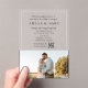 Celebrate the beginning of your forever with this stunning acrylic wedding invitation, designed to bring a modern and luxurious touch to your special day. At the top, the text combines elegant calligraphy with a classic serif font, creating a perfect balance of sophistication and charm. At the bottom, add your favourite photo to personalize this invitation and make it uniquely yours. Crafted on sleek acrylic, this invitation exudes contemporary elegance, making it ideal for modern and minimalist weddings. Its timeless design and premium finish set the tone for a celebration filled with love, joy, and unforgettable memories.