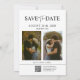 This editable save the date template is a modern black and white photo wedding announcement with minimalist typography, perfect for couples looking for a stylish and easy-to-personalize design.