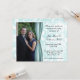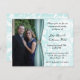 Stylish photo engagement party invitation done in a aquamarine and white damask pattern, with a photo area, on the left side, of the invitation. Graphics of a aquamarine satin looking ribbon, with a round diamond accent separates the photo from the text area. Personalize all the text for your party and add your own photograph. Beautiful invitation that will be a definite keepsake for the bride and groom to be.