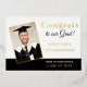 Photo Faire-part Gold Foil 2022 noir blanc noir. Une touche de classe avec un vrai papier d'or pour l'en-tête en haut, l'année et le nom des diplômés, et aussi en bordure de l'image et entre les deux couleurs de l'arrière - plan avec le blanc en haut, et le noir en bas. Personnalisez facilement le texte des deux côtés et remplacez l'exemple d'image par le vôtre.