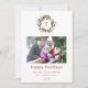 Une simple photo de famille première carte de voeux de vacances. Cette carte de noël présente une couronne d'eucalyptus avec des baies rouges. Tout le texte sur la carte peut être customisé. La photo est à des fins de placement seulement et peut être remplacée par n'importe quelle photo.