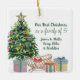 Our First Christmas as a family of 5 (editable for any number) personalized with your names, the year and a photo on the back. The design features a lit christmas tree with crib and gift wrapped presents. Sweet new baby themed holiday ornament keepsake to celebrate a new addition to your family this year.