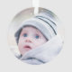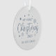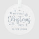 Festive Dusty Blue Typographie, Mon premier Noël, ornement photo. Caractéristiques, lignes de texte modèles pour le nom et l'année avec support photo unique.