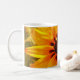 Photo de fleur jaune sur une tasse. La beauté et la puissance de la nature pour votre cuisine et boissons chaudes.