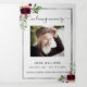 Un programme triplé élégant. Un arrière - plan blanc, un cadre faux argenté, des fleurs bordeaux et de l'espace pour votre photo. Personnalisez et ajoutez le nom, les dates et votre texte.