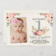 L'invitation florale de cette douce fille à l'occasion de son premier anniversaire est faite d'un gros mot de parties scintillant faux argent et d'un arrangement floral aquarelle. Le arrière - plan est blanc avec un motif de pois rose un peu fade. La photo de votre petite fille apparaît sur le côté gauche de l'invitation dans un cadre blanc. Le même design est également disponible sans photo. Pour plus d'invitations à l'anniversaire de la photo d'une fille, veuillez visiter le magasin. L'invitation florale de cette fille pour son premier anniversaire est prête à être personnalisée.