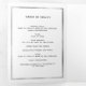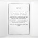 Un programme triplé élégant. Un arrière - plan blanc, un cadre faux argenté, des fleurs roses et blanches et un espace pour une photo. Personnalisez et ajoutez le nom, les dates et votre texte.