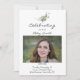 Photo funéraire célébration de l'invitation de la vie. Elégante verdure aquarelle avec photo. Simple invitation funéraire avec un thème botanique. Le script et les polices modernes sont à la fois élégants et propres. Un sentiment sincère est sincère et approprié. Tous les champs de texte sont personnalisables si vous voulez créer votre propre sentiment ou garder ce qui vous a été fourni. Personnalisez avec vos informations et photo pour créer une célébration de la vie invitation avec qui est classique avec une touche moderne. Vous pouvez trouver d'autres options de mémorial avec ce thème général dans la collection Elegant Watercolor Leaf and Branch Memorial Collection dans le magasin The Gathering Designs.