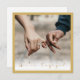 The perfect way to tell the world you're engaged. This elegant announcement card is a fun and modern way to share your exciting news with family and friends. The card features a thin border and says "We're Engaged" written in a modern gold effect script. You have the option to change the message and names.