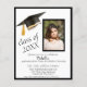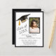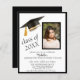 Elegant graduation party invitation featuring personalized picture of the graduate. Invitation detailing in black. School color neutral. Graduation party details are personalized on the front.
