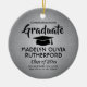 Commemorate the graduate's achievement with a custom photo silver and grey round graduation Christmas ornament. Picture and all text are simple to customize. Include school name and degree, congratulations, thanks mom and dad, or other message of your choice. Design features a faux brushed stainless steel metallic background, black graduation cap, personalized modern typography name, school, & class year, and one photo of your choice, such as a senior picture or image from the commencement ceremony. Makes a thoughtful keepsake gift idea and an elegant addition to Xmas home decor. Congratulations to the graduate!