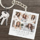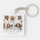 A simple and elegant boho-inspired graduation keychain featuring a five-photo collage for a personalized touch. The design showcases five carefully arranged photos, framed by a clean white background with soft grey text. "Class of 2026," the graduate’s name, and school are displayed in understated, sophisticated fonts for a refined look.