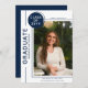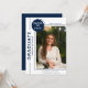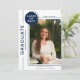 Photo Graduation Modern Script Blue White Announcement features your favourite photo with the simple text "Graduate" and your name and personalized graduation details. Personalize by editing the text in the text boxes provided and adding your favourite photo. Created by ©Evco Studio www.zazzle.com/store/evcostudio