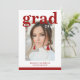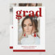 Photo Graduation Party Elegant Modern Script Invitations feature your favourite photo with the simple burgundy text "Grad (year)" and your name and personalized graduation details on the front. On the reverse add an additional picture with your graduation invitation information below. Personalize by editing the text in the text boxes provided. Created by ©Evco Studio www.zazzle.com/store/evcostudio