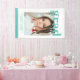 Photo Graduation Party Elegant Modern Script Banner Party Sign feature your favourite photo with the simple turquoise text "Grad (year)" and your name and personalized graduation details on the front. Perfect for the grad as a graduation gift or graduation party decor. Created by ©Evco Studio www.zazzle.com/store/evcostudio