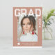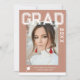 Photo Graduation Party Elegant Modern Script Invitations feature your favourite photo with the simple white text "Grad (year)" and your name and personalized graduation details on the front on a soft brown background. On the reverse add an additional picture with your graduation invitation information below. Personalize by editing the text in the text boxes provided. Created by ©Evco Studio www.zazzle.com/store/evcostudio