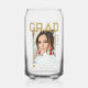 Photo Graduation Party Elégant Script moderne Personnalisé Can Glass Beer Glass avec votre photo préférée avec le texte en or simple "Grad (année)" et votre nom et les détails de graduation personnalisée. Parfait pour une fête de remise de diplômes. Créé par ©Evco Studio www.zazzle.com/store/evcostudio
