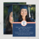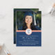 Invitation de la fête de graduation carte photo personnalisé en rose pêche, bleu marine foncé et blanc design moderne. Customisez ce grand carte photo en ajoutant l'année de votre diplôme, vos propres photos et les détails de votre fête de remise des diplômes.