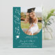 Photo Graduation Party Modern Elegant Script Invitations features your favourite photo with the text "She Did It" in elegant calligraphy script typography on a green background. Add your graduation invitation information below. Personalize by editing the text in the text boxes provided. Send as an instant digital download, as a physical invitation by mail or both. Created by ©2025 Evco Studio www.zazzle.com/store/evcostudio