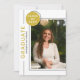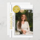 Photo Graduation Party Modern Script Black Gold Invitations feature your favorite photo with the simple text "Graduate" and your graduation party invitation information on the reverse. Personalize by editing the text in the text boxes provided and adding your favorite photo. Created by ©Evco Studio www.zazzle.com/store/evcostudio