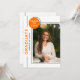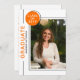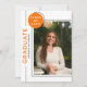 Photo Graduation Party Modern Script Black Orange Invitations feature your favorite photo with the simple text "Graduate" and your graduation party invitation information on the reverse. Personalize by editing the text in the text boxes provided and adding your favorite photo. Created by ©Evco Studio www.zazzle.com/store/evcostudio