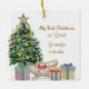 My First Christmas as Great Grandpa to ... personalized with the new grandchild's name, the year and a photo on the back. The design features a lit christmas tree with crib and gift wrapped presents. Sweet new baby themed holiday ornament keepsake to celebrate a new addition to your family this year.