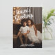 Modern design with rustic farmhouse plaid pattern on the back. This works best with a vertical photo - subject centred. The calligraphy style font makes it a modern, whimsical choice for a Christmas photo card. The back includes a bright green pattern.