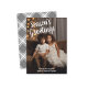 Photo Handwritten Grey Plaid Season's Greetings Holiday Card