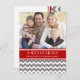 Happy holidays Christmas custom photo postcards in contemporary red, dark charcoal grey and white retro and fun chevron zigzags stripes pattern, elegant and simple with stylish text. Wish your family and friends all the best this holiday season with this fun postcard.