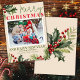 Photo on Front Holly and Pine Red Berries Beige Christmas Card with a beautiful spray of holly, red berries and pine on the party invitation for a festive Holiday party.