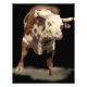 Ce grand taureau, avec sa peau rouge, sa tête et sa poitrine blanches, montre sa puissance en se servant de ses dollars. Oeuvre ©Sally Lannier/Rêves peints Designs