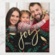 This beautiful and modern black, red, green, white and gold Christmas wine label features your photo and the sentiment "joy" in hand lettered script calligraphy amidst gold and red berries and Christmas greenery and the year on a black background. Easy to customize with your own photos and text.